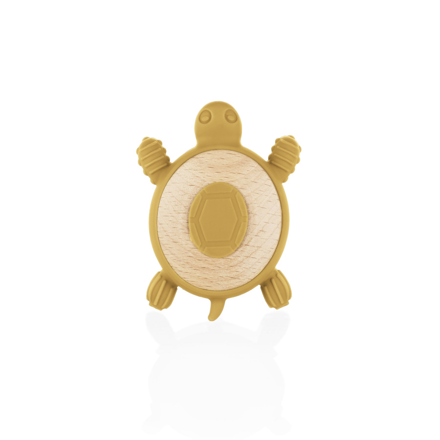 Silikónové drevené hryzátko Turtle, Mustard Yellow