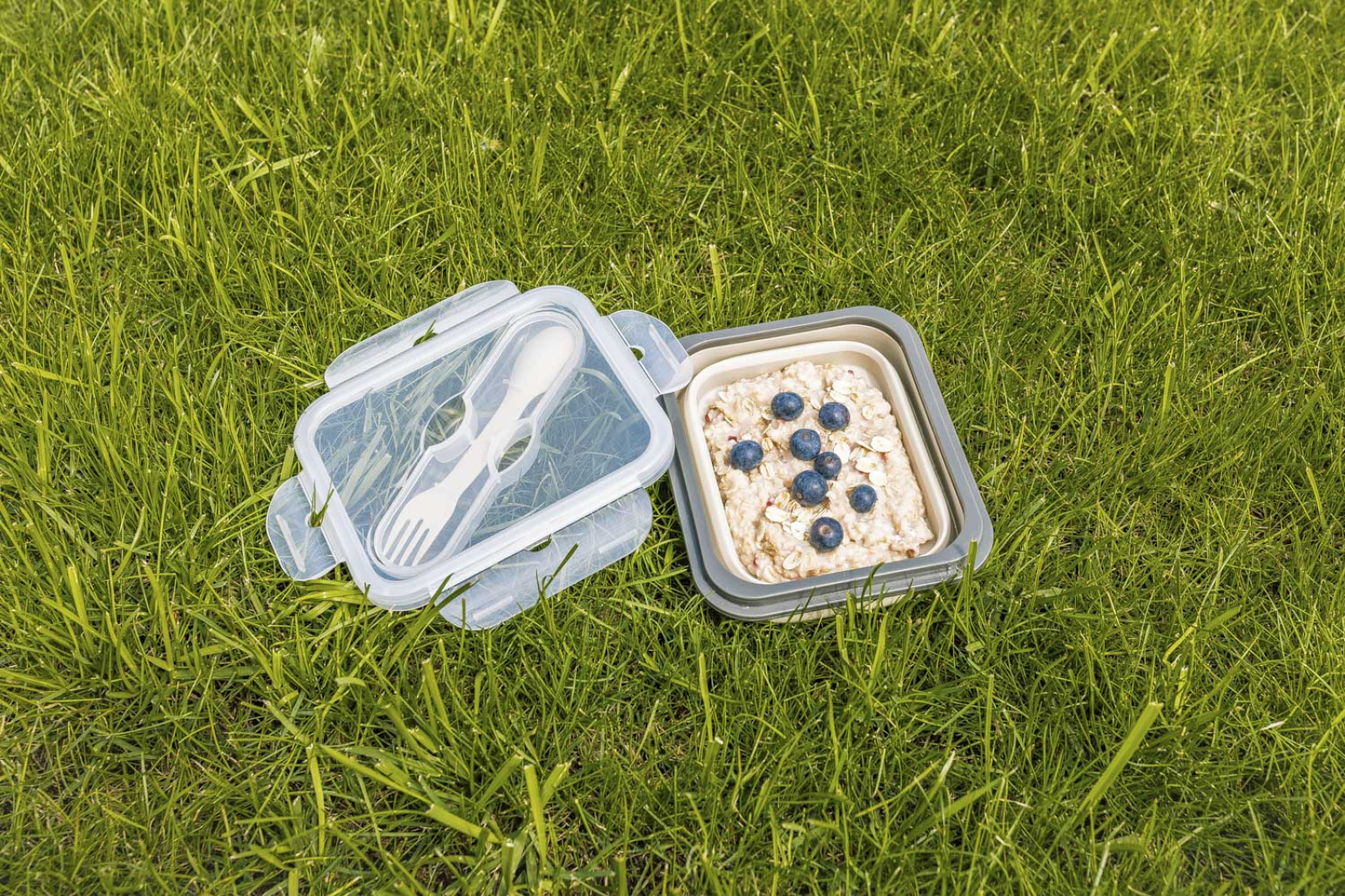 Silikónový box na občerstvenie s príborom malý, Sand Beige