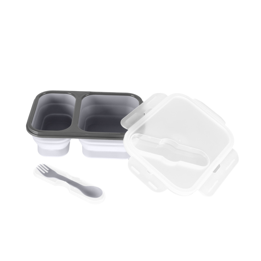 Silikónový box na občerstvenie s príborom veľký, Dove Grey