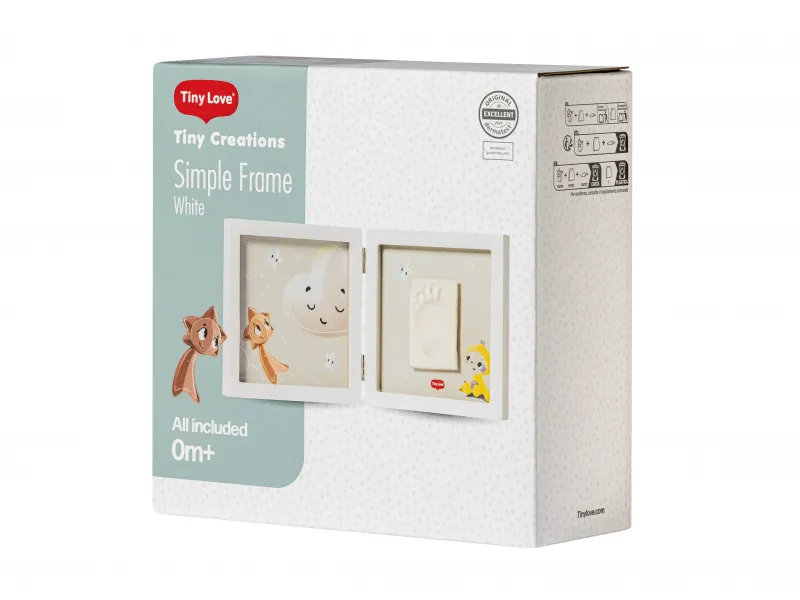 Dřevěný rámeček Tiny Creations Simple Frame nabízí dva oddělené prostory pro fotografii a otisk ručičky a nožičky Vašeho miminka. Vyrobte si krásnou dekoraci, která vám zároveň pomůže uchovat vzpomínky na krásné období po narození vašeho dítěte.
