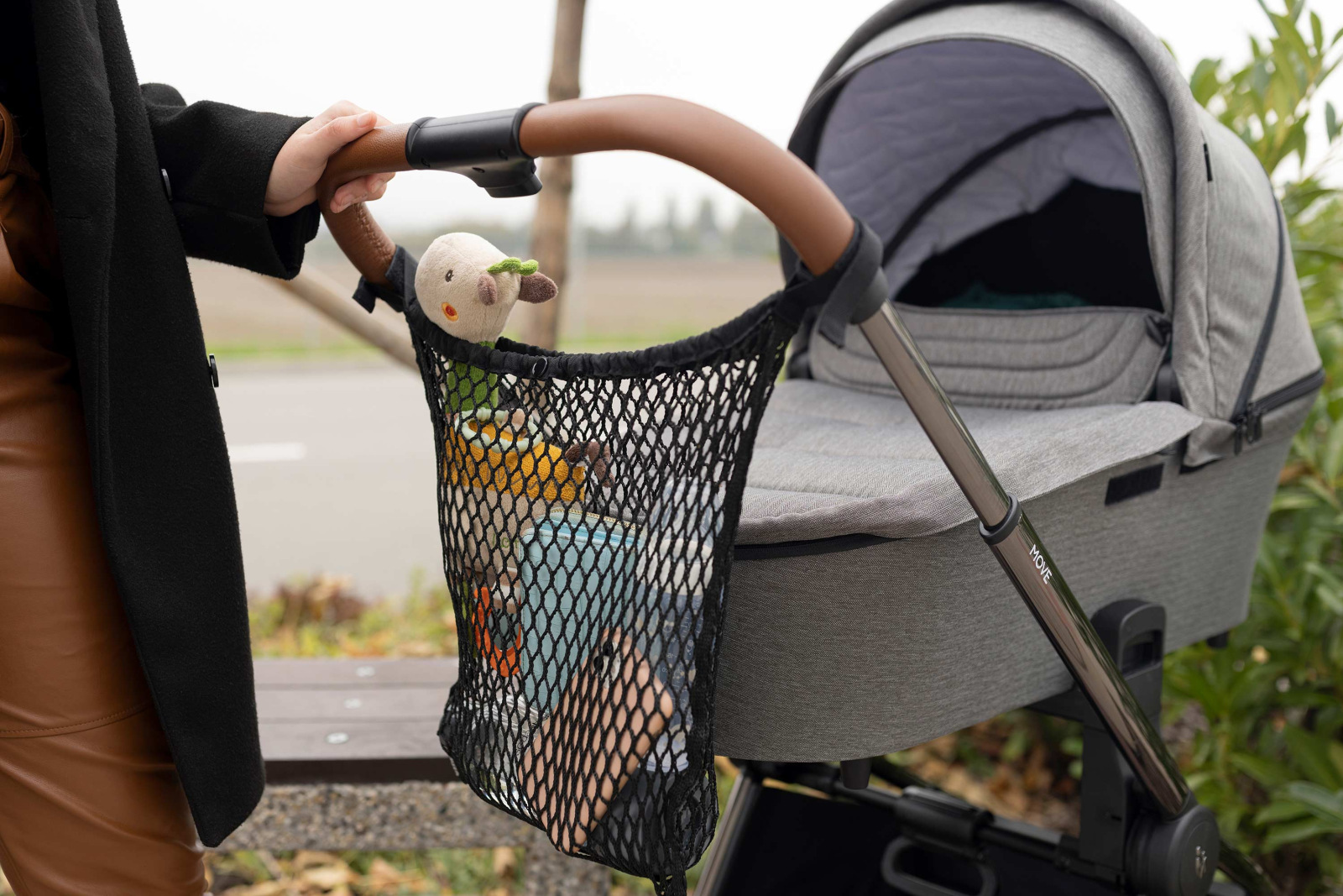 Sieťová taška na kočík vám umožní mať všetky potrebné veci po ruke. Dá sa ľahko nainštalovať pomocou suchých zipsov na rukoväť kočíka a je kompatibilný so všetkými modelmi. Taška je vyrobená z odolného a pružného materiálu (nosnosť do 2,5 kg). Je priestranný a vďaka možnosti uzavretia z neho nič nestratíte.