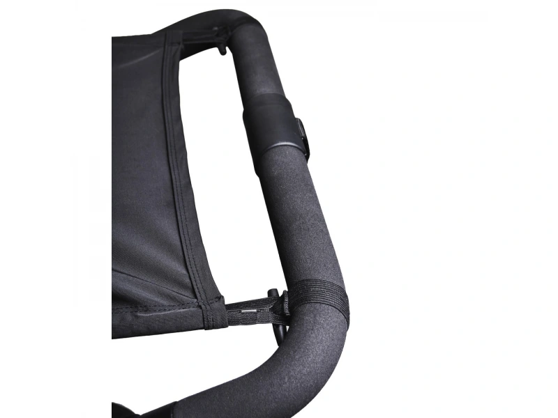 - Upevnění přes stříšku pomocí elastického pásku pod opěrkou nebo korbičkou