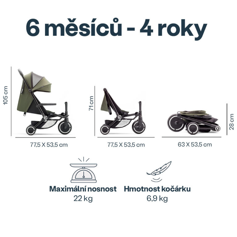 rozmery v režime trojkolky: 77,5 x 53,5 x 71 cm