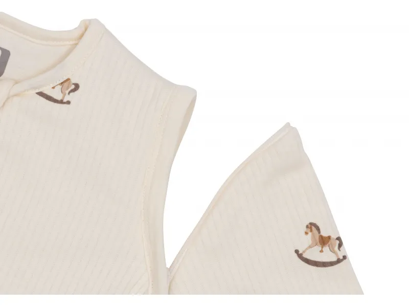 Praktický spací pytel s oddělitelnými rukávy nabízí variabilitu při použití dle počasí a teploty v místnosti. Díky jemné výplni je vhodný pro použití místo peřinky. Spací pytel zajistí, že se dítě v noci neodkope a bude tak po celou dobu spánku v pohodlí a teple bez rizika prochladnutí. Kryté zipy v průramcích umožňují snadné oddělení rukávů, pokud chcete spací pytel používat v teplejším prostředí bez rukávů. Zip na přední straně umožňuje snadné vložení dítěte do spacího pytle i přebalování během spaní.