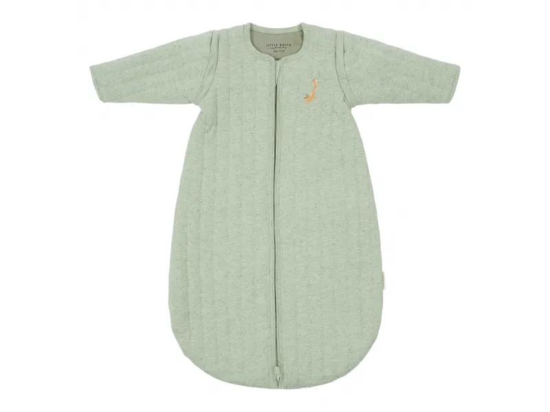 Praktický spací vak s oddeliteľnými rukávmi ponúka variabilitu pri použití podľa počasia a teploty v miestnosti. Vďaka jemnej výplni je vhodný na použitie namiesto perinky. Spací vak zaistí, že sa dieťa v noci neodkope a bude tak po celú dobu spánku v pohodlí a teple bez rizika prechladnutia. Kryté zipsy v prieramkoch umožňujú ľahké oddelenie rukávov, pokiaľ chcete spací vak používať v teplejšom prostredí bez rukávov. Zips na prednej strane umožňuje ľahké vloženie dieťaťa do spacieho vaku a prebaľovanie počas spania.