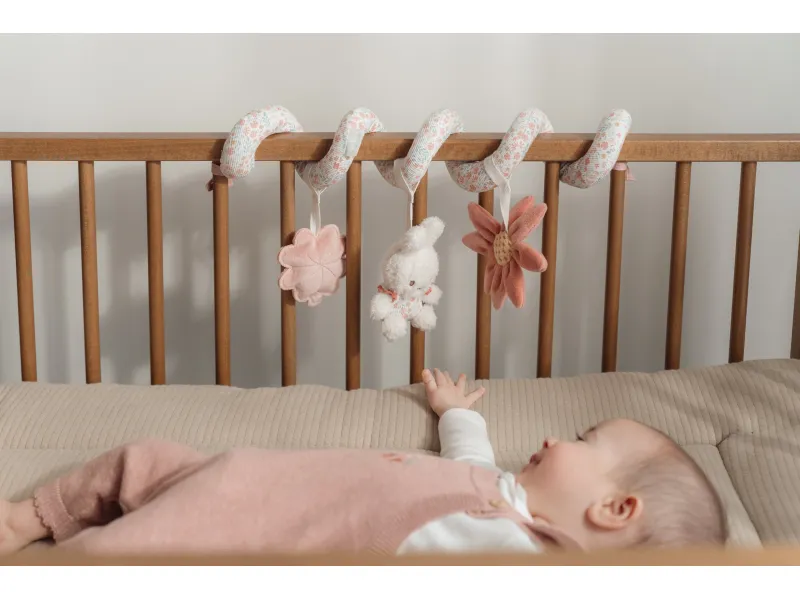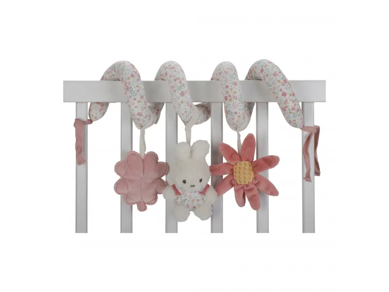 Textilná špirála s jemnými plyšovými hračkami je navrhnutá tak, aby bábätku spríjemnila chvíle v postieľke, kočíku aj autosedačke už od prvých dní. Mäkké motívy králička Miffy, kytičky a štvorlístka lákajú k dotyku, pozorovaniu a uchopovaniu. Hravé prvky podporujú koordináciu ruka–oko a prirodzený zmyslový rozvoj. Dizajn kolekcie Miffy Lucky Blossom nesie typický jemný štýl značky Little Dutch a krásne zapadne do každej výbavy pre bábätko.