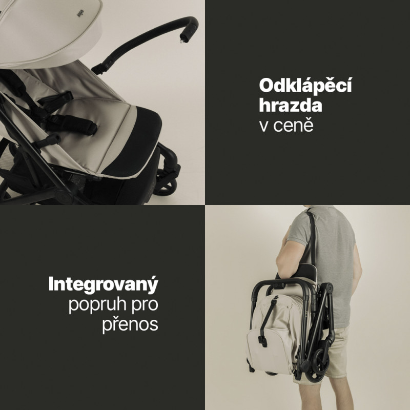 Zopa Jet je dokonalým riešením pre rodičov, ktorí chcú spojiť štýl, jednoduchosť a mobilitu bez kompromisov. Vďaka svojej nízkej hmotnosti (len 6,8 kg) a kompaktným rozmerom sa pohodlne zmestí do batožinového priestoru auta a dokonca aj na palubu lietadla – spĺňa totiž rozmery príručnej batožiny. Skladanie jednou rukou, kvalitné odpruženie a moderný dizajn z neho robia ideálneho partnera na každý deň.