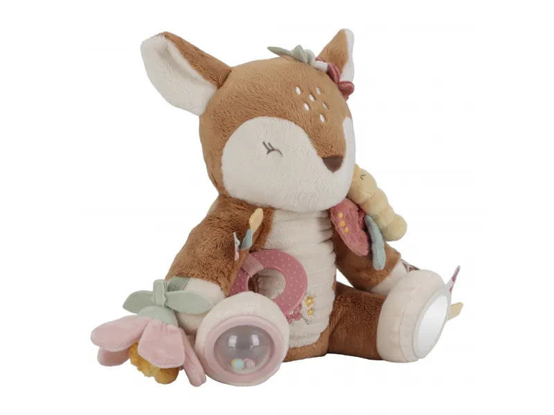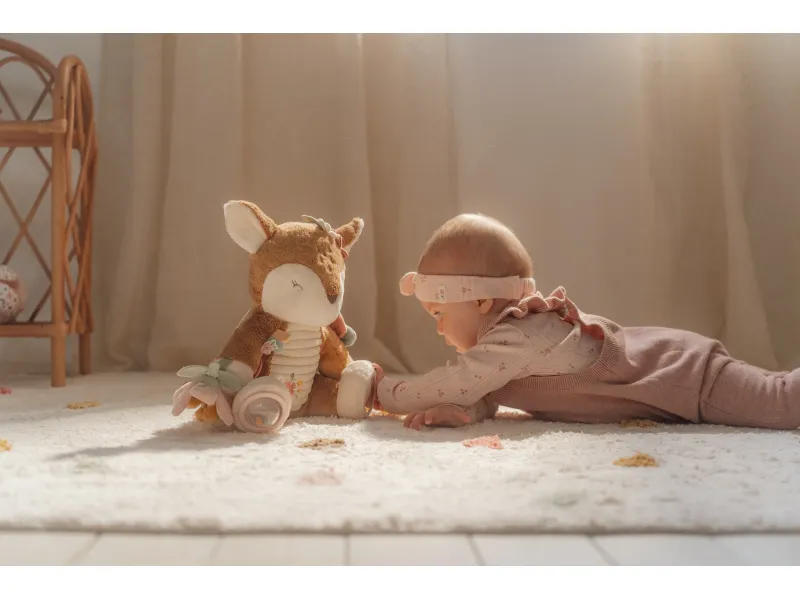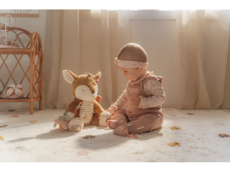 Nežná plyšová srnka s aktivitami je ideálnym spoločníkom pre bábätká už od prvých dní. Mäkký materiál, hrkajúce prvky a rôznorodé detaily prirodzene lákajú k dotyku, skúmaniu a hre. Hračka podporuje zmyslový rozvoj, jemnú motoriku a zároveň môže slúžiť ako upokojujúci kamarát do postieľky pri zaspávaní. Dizajn z kolekcie Fairy Garden krásne zapadne do každej detskej izby a odráža citlivý štýl značky Little Dutch.