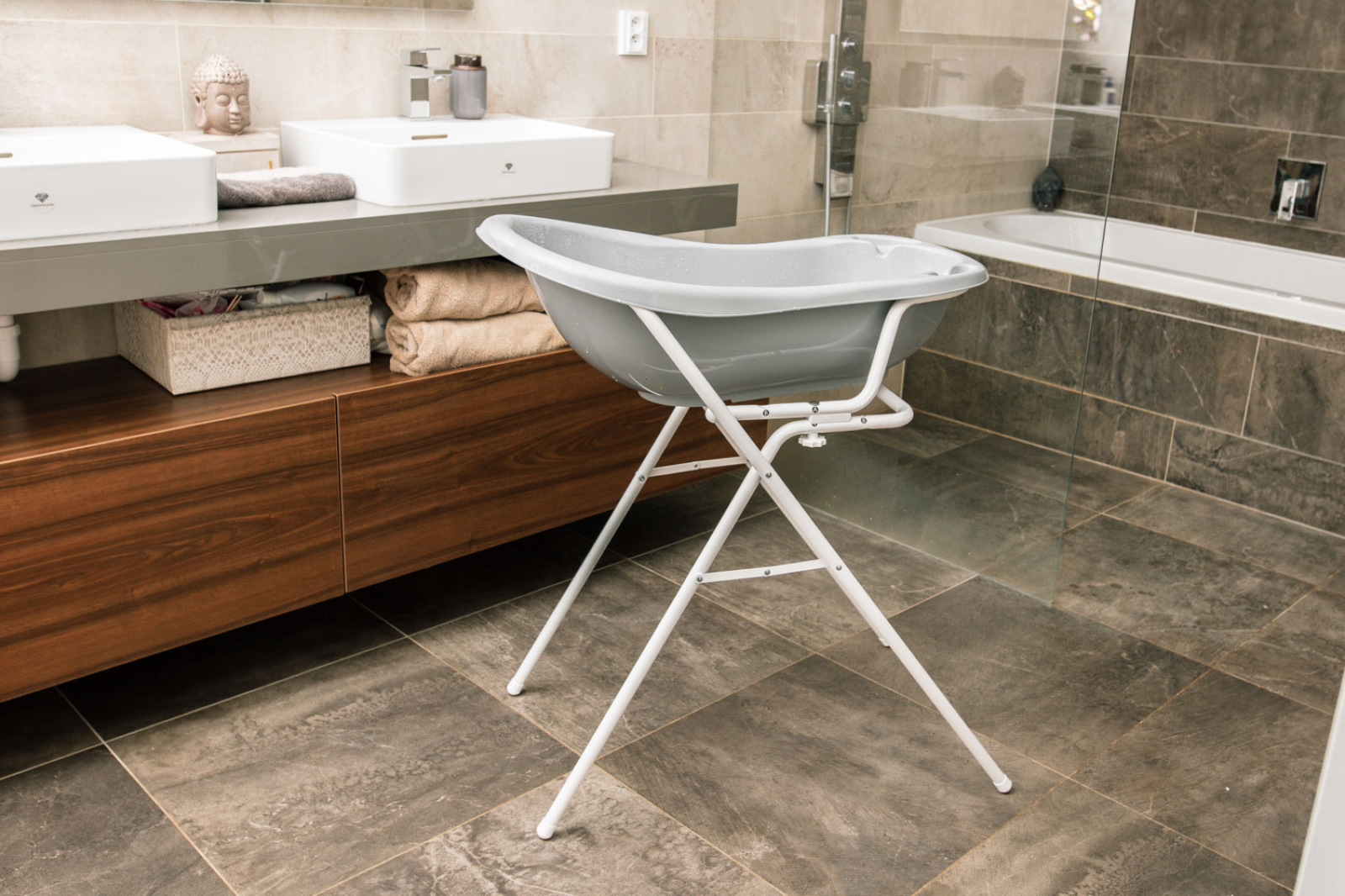 Univerzálny stojan pre detské vaničky Zopa. | Možno používať, kým sa dieťa nezačne dvíhať na rukách a nohách.