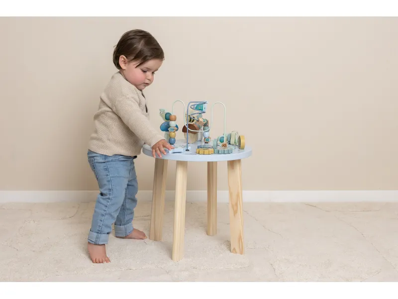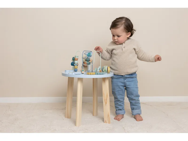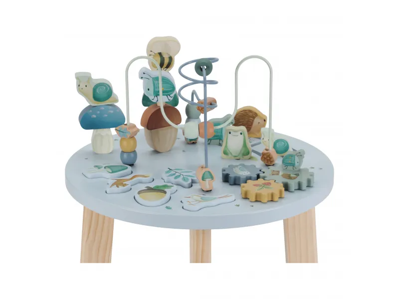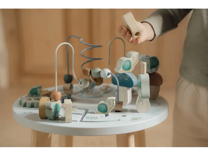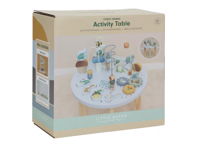 Multifunkčný drevený stolík je navrhnutý tak, aby prirodzene podporoval objavovanie, pohyb a učenie sa hrou už od prvého roka dieťaťa. Rôznorodé herné prvky s lesnými motívmi motivujú dieťa k manipulácii, skúmaniu a rozvíjaniu zmyslov. Stabilné prevedenie zároveň poskytuje istotu a oporu pri prvých krôčikoch. Jemný dizajn z kolekcie Forest Friends krásne zapadne do detskej izby a nesie typický rukopis značky Little Dutch.