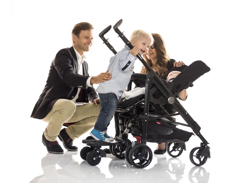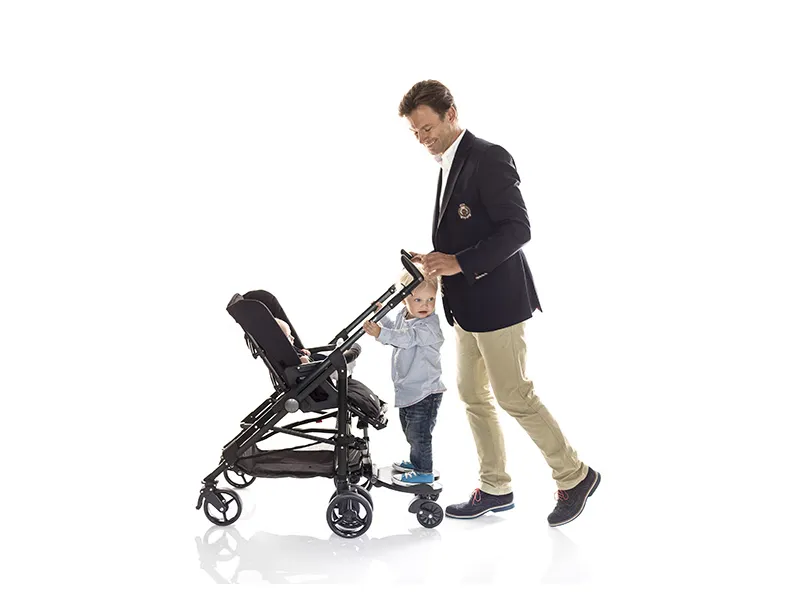 Švédske stúpadlo ku kočíku pre pohodlné cestovanie s dvomi deťmi