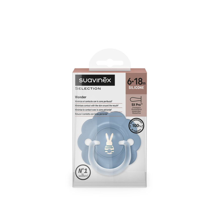 SUAVINEX | Cumlík SX PRO fyziologický WONDERLAND NEW 6/18m - modrý králik