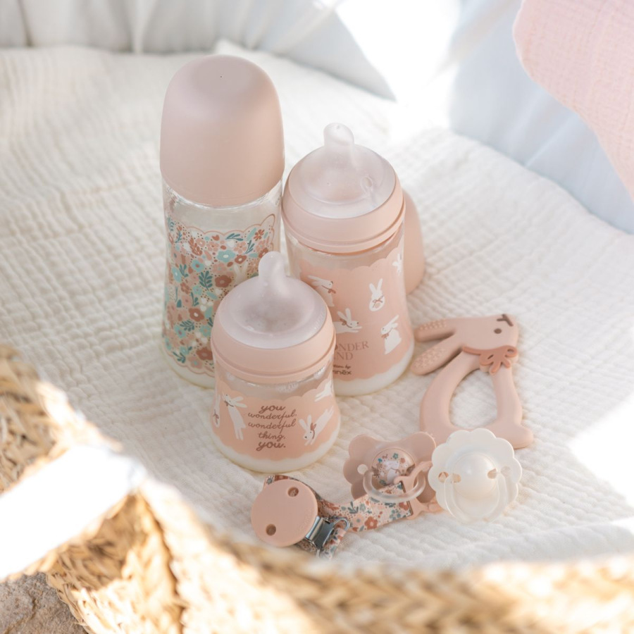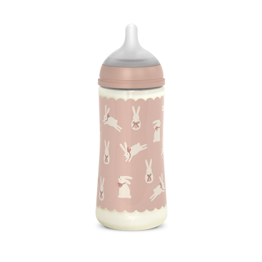 SUAVINEX | Dojčenská fľaša WONDERLAND NEW 360ml FYZIOL PRŮTOK L - ružový králik