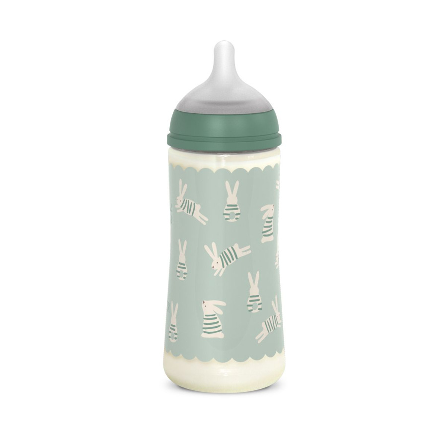 SUAVINEX | Dojčenská fľaša WONDERLAND NEW 360ml FYZIOL PRŮTOK L - zelený králik