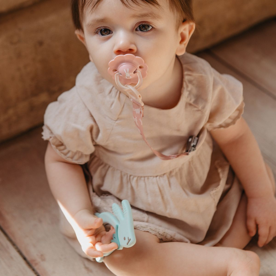 Hryzátko z potravinárskeho silikónu je vhodné pre bábätká už od narodenia. Vďaka ľahkému a kompaktnému prevedeniu sa ľahko drží aj v malých detských ručičkách.