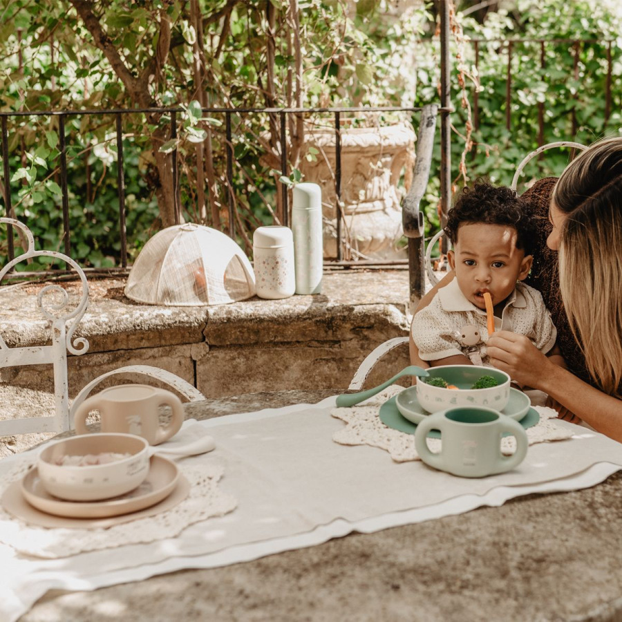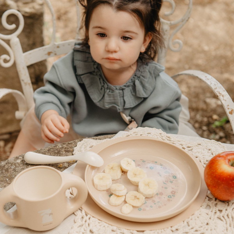 Sada je ľahká, jednoducho ovládateľná a ideálna pre malé detské ruky, takže ju dieťa môže používať aj samostatne. Odolný, nerozbitný materiál spolu s premyslenými tvarmi a zaoblenými hranami zabezpečujú maximálnu bezpečnosť a pohodlie pri každom jedle.