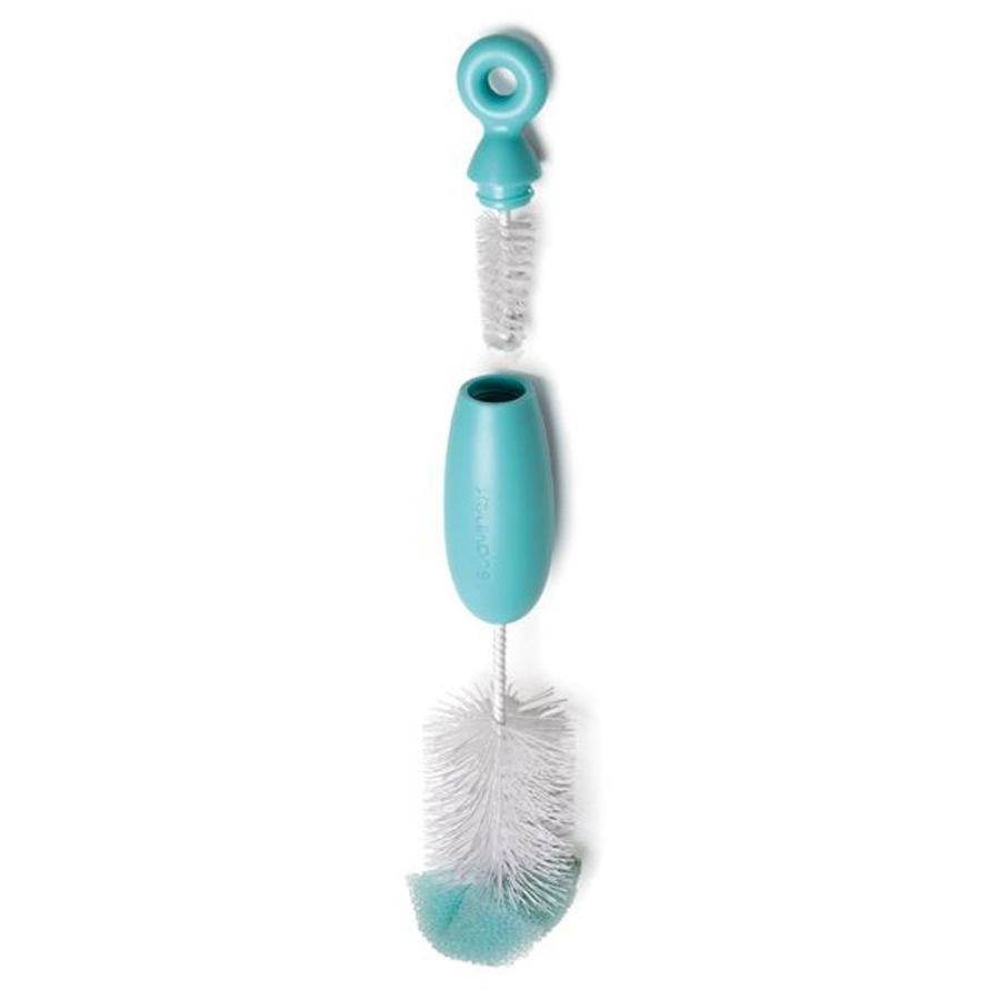 Hlavná veľká kefa má flexibilné štetiny a ergonomickú rukoväť, ktorá umožňuje pevný a pohodlný úchop pri čistení dojčenských fliaš. Vo vnútri rukoväte sa skrýva malá detailná kefa, ideálna na precízne čistenie cumlíkov, uzáverov a ďalších drobných častí. Obe kefy sú vyrobené z bezpečných materiálov, ktoré nepoškodzujú povrch fľaší a zároveň zaručujú dlhú životnosť.