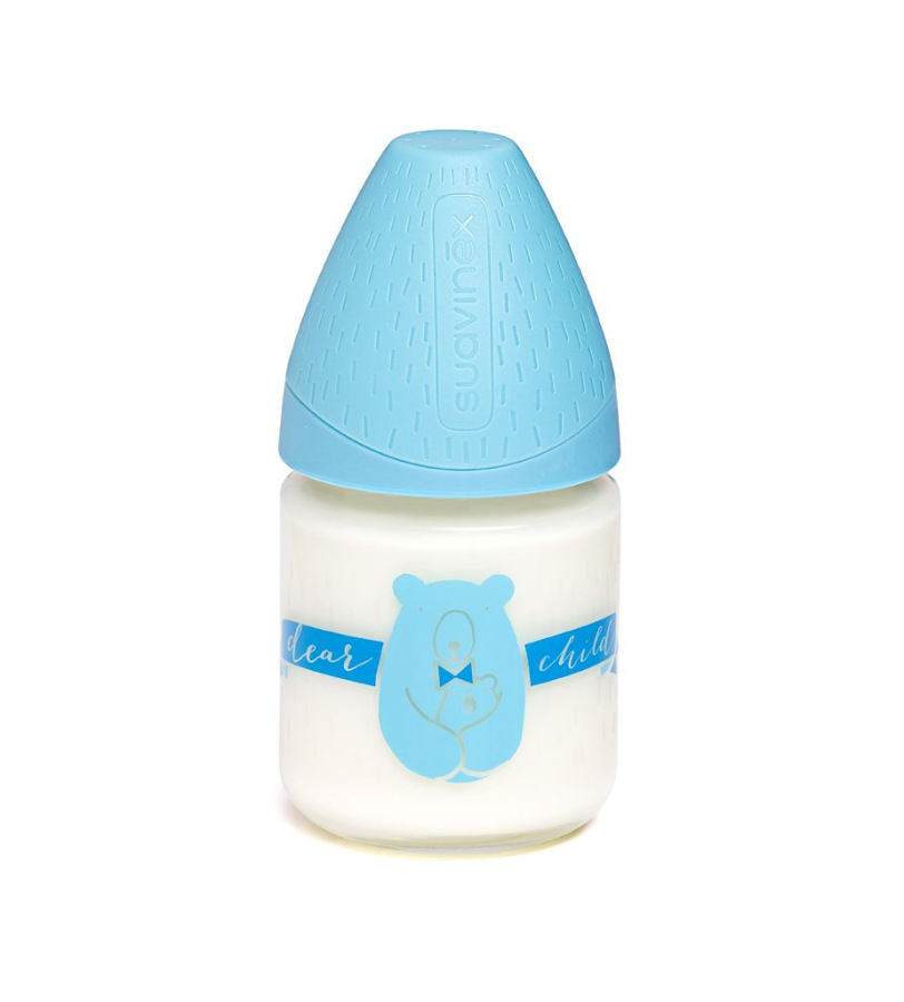 SUAVINEX | MFL FĽAŠA SKLO 120 ml - MODRÁ/MACKO