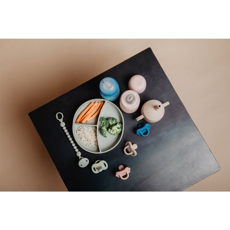 Praktický detský tanier Suavinex COLOUR ESSENCE je navrhnutý pre malé deti, ktoré sa učia samostatne jesť. Vďaka silnej prísavke bezpečne drží na stole alebo pultíku stoličky, takže jedlo zostáva tam, kde má. Mäkký potravinársky silikón je odolný, príjemný na dotyk a bezpečný pre citlivé ďasná.