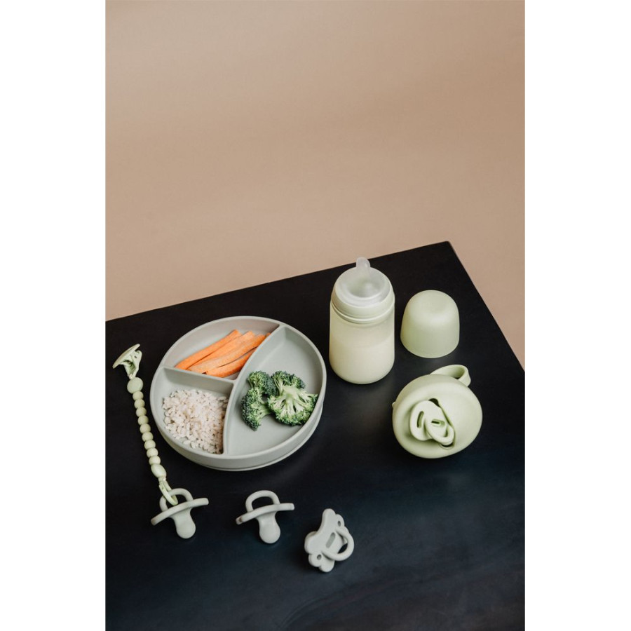 Praktický detský tanier Suavinex COLOUR ESSENCE je navrhnutý pre malé deti, ktoré sa učia samostatne jesť. Vďaka silnej prísavke bezpečne drží na stole alebo pultíku stoličky, takže jedlo zostáva tam, kde má. Mäkký potravinársky silikón je odolný, príjemný na dotyk a bezpečný pre citlivé ďasná.