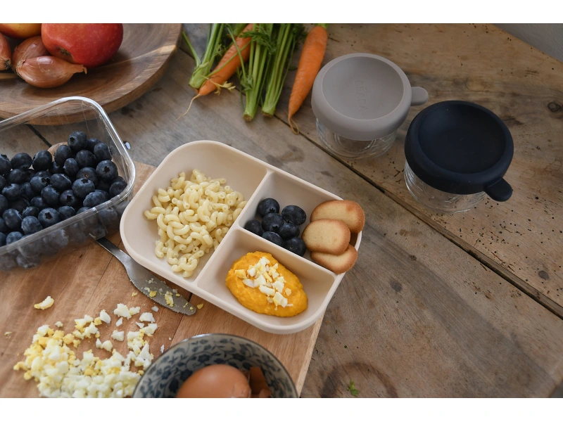 Silikónový tanier Béaba Clay s pevnou prísavkou je ideálnym riešením pre prvé príkrmy aj samostatné jedenie. Vďaka stabilnému uchyteniu k stolu či pultíku sa pri jedle nešmýka a bráni rozliatiu pokrmu. Tri praktické priehradky umožňujú oddelené servírovanie jedla – ideálne pre polievku, zeleninu aj mäkké prílohy.
