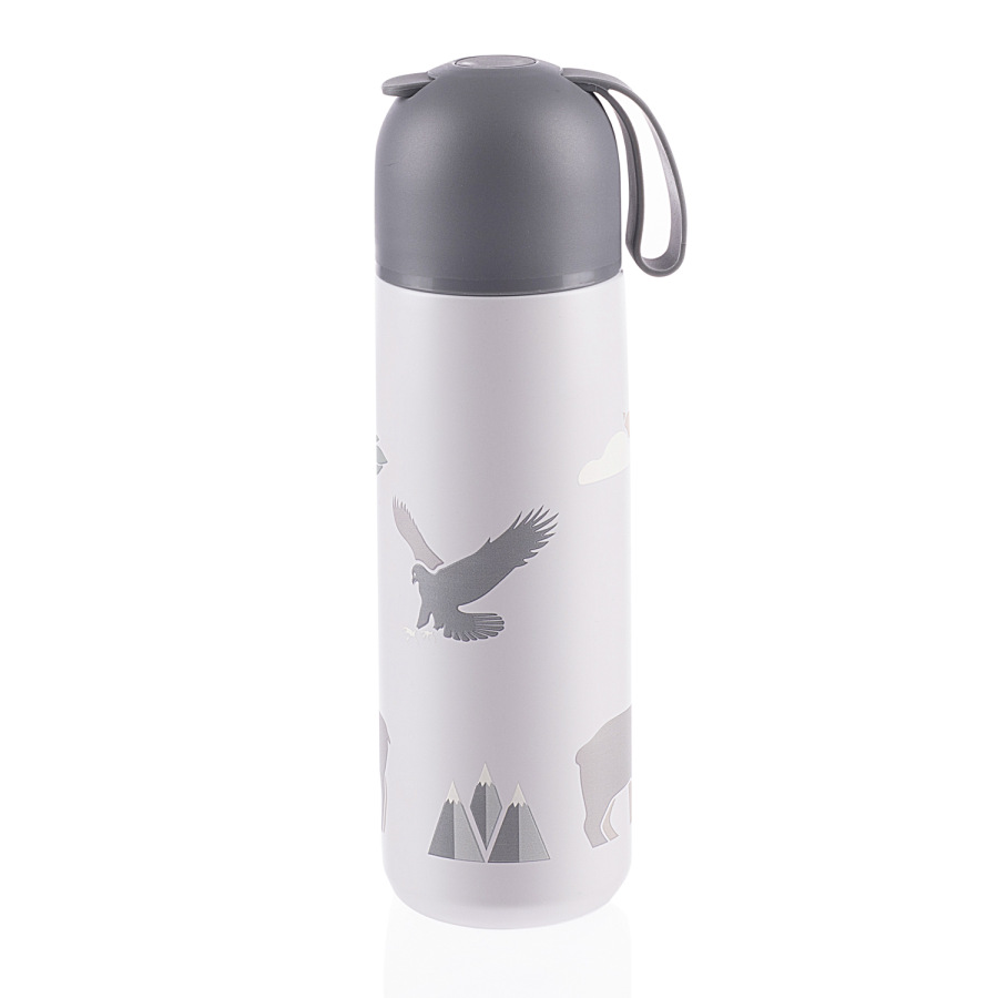 Kvalitná termoska na tekutiny s objemom 400 ml udrží horúce nápoje až 12 hodín, studené nápoje až 24 hodín. Je vyrobená z kvalitnej nehrdzavejúcej ocele, ktorá je odolná proti korózii. Tesne priliehajúce viečko zaisťuje, že termoska nevyteká, a vrchný uzáver na pohodlné nalievanie zaručuje, že sa vám tekutina nevyleje ani pri jazde autom po nerovnej ceste, vďaka dvojitému uzáveru si môžete byť istí aj tým, že dieťa tekutinu z termosky nevyleje. Viečko termosky možno použiť ako hrnček.