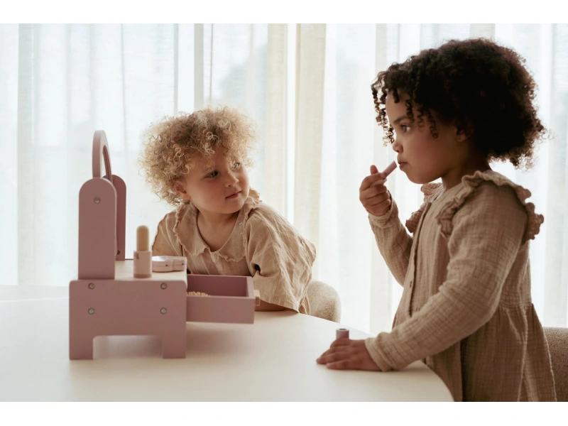 Tento rozkošný toaletný stolík Little Dutch v ružovej farbe poteší každú malú parádnicu. Ponúka priestor pre fantáziu, hranie rolí a objavovanie krásy. Stačí si sadnúť pred zrkadlo, otvoriť zásuvku s doplnkami a začať sa upravovať ako skutočná stylistka. Zároveň je krásnym kúskom dekorácie v detskej izbičke.