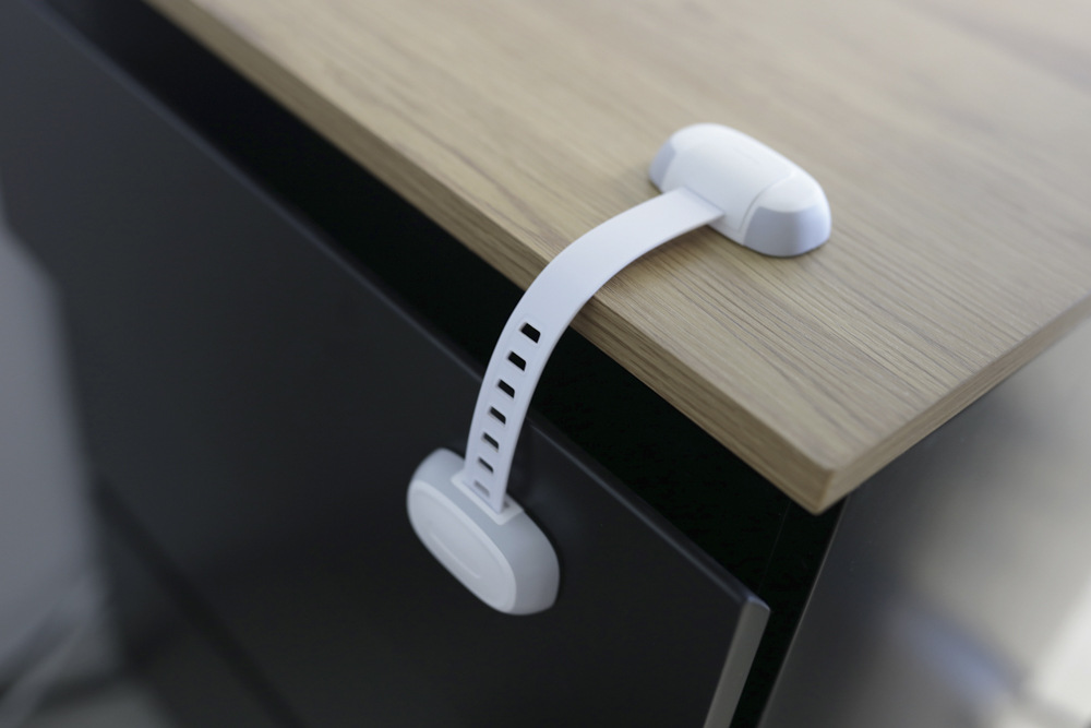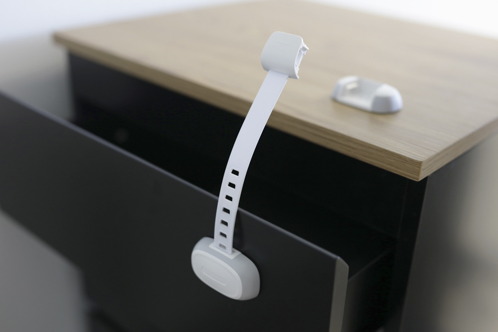 Univerzálny zámok je možné inštalovať na chladničky, skrinky, toalety, zásuvky a ľubovoľný nábytok. Zabraňuje otvoreniu zásuviek aj skriniek. Dĺžku je možné upraviť podľa potreby. Na otvorenie zámku slúži tlačidlo, ktoré deti nedokážu stlačiť. Jednoduchá inštalácia pomocou lepiacej pásky a skrutkovača.