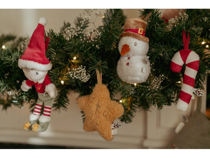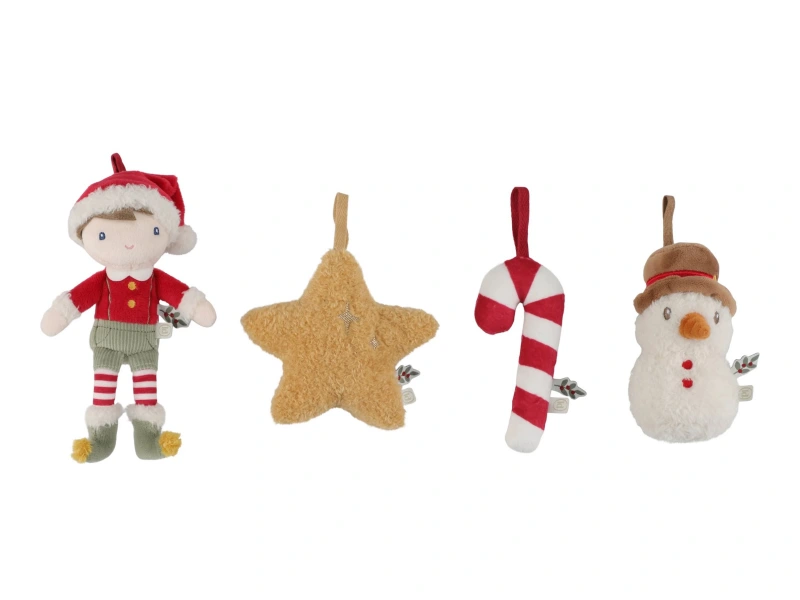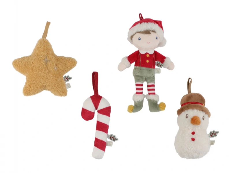 Rozkošná sada štyroch plyšových vianočných ozdôb Little Dutch prinesie do vášho domova hrejivú atmosféru sviatkov. V krásnom darčekovom balení nájdete postavičku Jima vo vianočnom oblečení, usmievavého snehuliaka, cukrovú paličku a žiarivú hviezdu – všetko v mäkkom prevedení, bezpečnom pre deti. Ozdoby sú ľahké, príjemné na dotyk a dajú sa jednoducho zavesiť na stromček, vetvičku alebo girlandu.