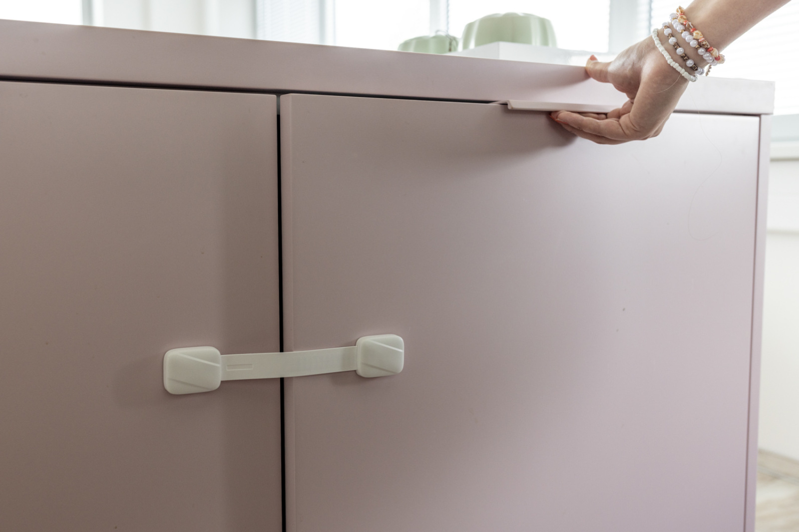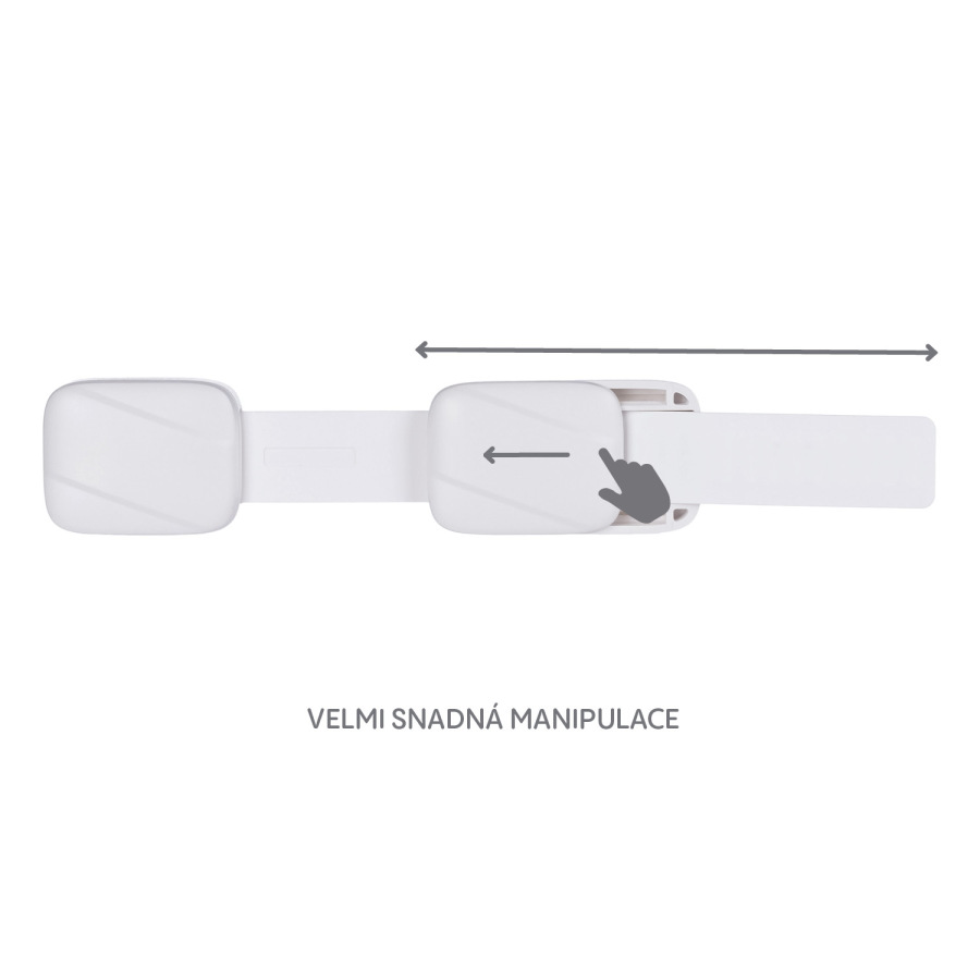 Zvedavé deti často otvárajú skrinky a zásuvky, čo môže byť veľmi nebezpečné. Nastaviteľný univerzálny zámok skrinky je navrhnutý tak, aby zabránil deťom v prístupe k nebezpečným predmetom vo vnútri skriniek, čím poskytuje rodičom pokoj a bezpečnosť. Je vhodný na všetky rovné povrchy a jeho dĺžku možno nastaviť podľa potreby.